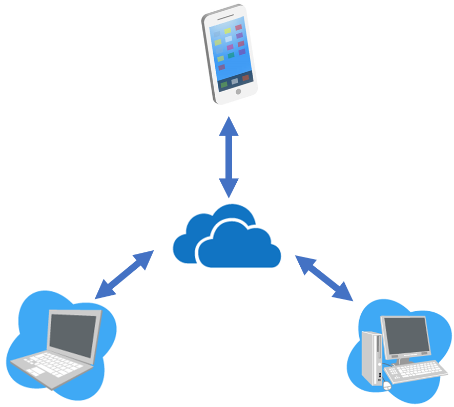 PC内部のストレージとインターネット上にもファイルが保存されているため、複数のパソコン、スマートフォンやタブレットでも同じファイルを閲覧、編集が可能となります。